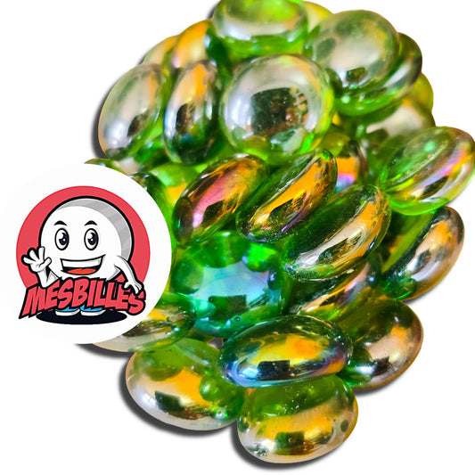 1 Canica Plana Irisada Verde-Amarilla 30 mm