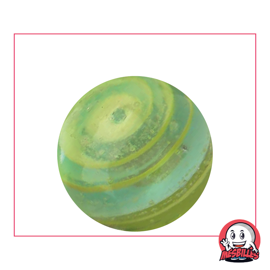 ¡Diga adios a las redes de canicas voluminosas! misCanicas presenta la canica kim'play de gran formato: la Canica Ciclon Amarillo y Cielo translucida de 35 mm.