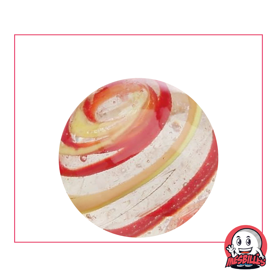 ¡Diga adios a las redes de canicas voluminosas! misCanicas presenta la canica kim'play de gran formato: la Canica Ciclon naranja y Rojo translucida de 35 mm.