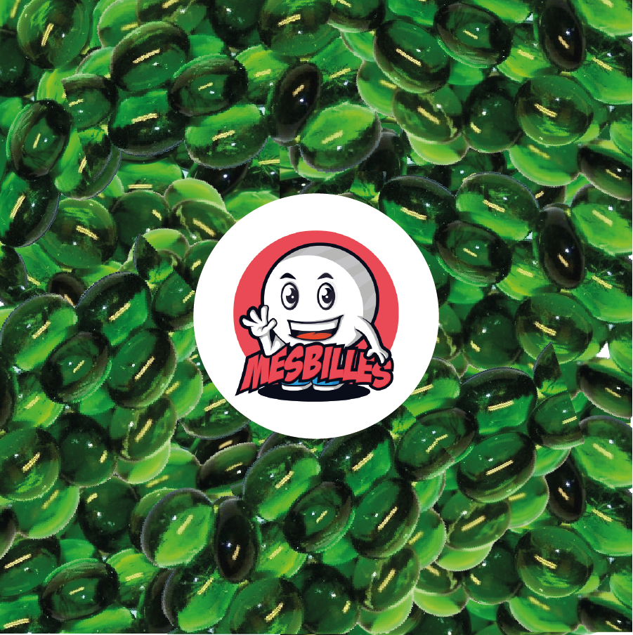 En la Gran Familia de Canicas Loupe, hay la Canica Plana de vidrio translúcido de Color Verde Oscuro.