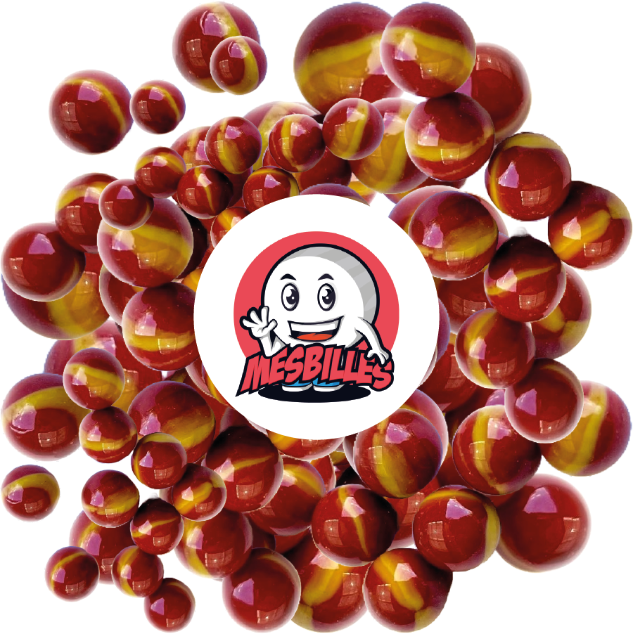 las Canicas Redondas existen en diferentes tamanos. la bola Volcan de vidrio Opaco de Color Rojo con trazas de blanco esta aqui disponible en su version 14 mm.